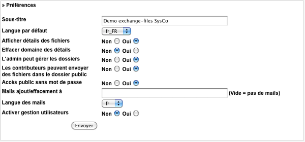 Un panneau de préférences permets aux administrateurs d'affiner les fonctionnalités de boxfiles: