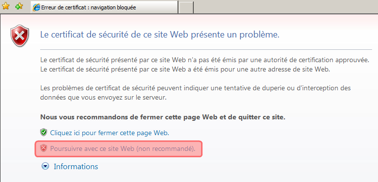| Comment éviter d'avoir le message d'erreur de certificat dans Microsoft Internet Explorer (03.03.09) |