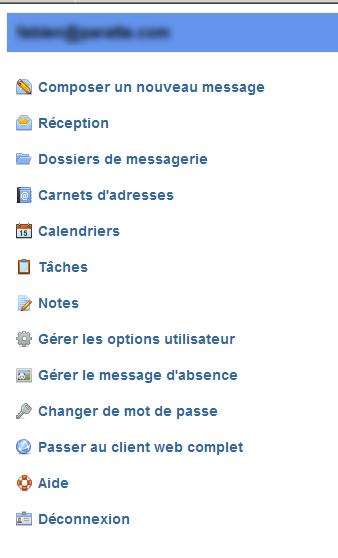 La passerelle webmail permet de personnaliser la configuration de votre compte de messagerie (message d'absence, etc.)