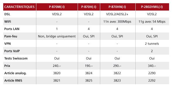 | Tableau comparatif des routeurs VDSL ZyXEL - nouveaux modèles fin 2011 (14.11.11) |