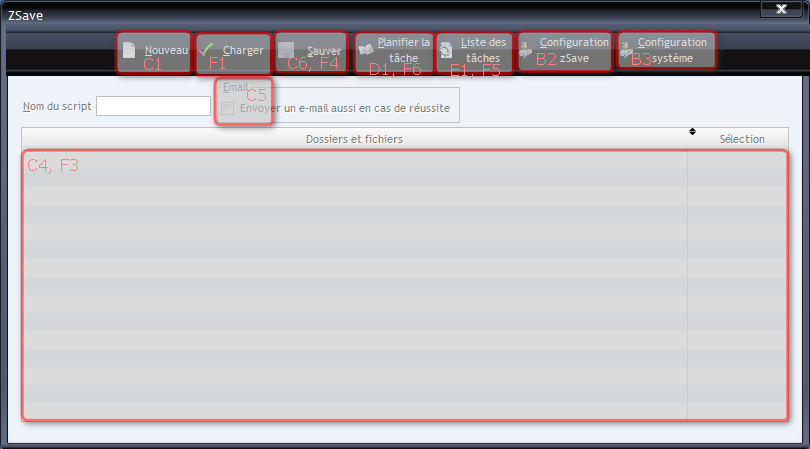 Cet article vous expliquera comment utiliser l'utilitaire de gestion de backup Zsave A - Installation de zSave sur votre ordinateur 1. Téléchargez l'application depuis notre site web 2. Lancez l'installation en ouvrant le fichier téléchargé 3. Suivre les instructions à l'écran -> Attention il faut installer le programme dans c:\zsave 4. Installer cwRsync_2.1.3_Installer dans le dossier par défaut B - Démarrage et configuration de zSave 1. Démarrez zSave 2. Cliquez sur le bouton Configuration zSave, et vérifier que les informations soient correctes. Elles doivent correspondre aux informations qui se trouvent dans l'e-mail de confirmation. 3. Cliquez sur Configuration système, et entrez votre mot de passe et votre nom d'utilisateur Windows si celui-ci n'est pas encore rempli C - Créer un script de sauvegarde 1. Cliquez sur le bouton nouveau 2. Donnez un nom unique à votre script 3. Choisissez le lecteur contenant les fichiers que vous désirez sauver (un script par lecteur) puis cliquez sur valider 4. Par défaut tous le contenu du lecteur est coché. Décochez les fichiers ou dossiers que vous ne désirez pas sauver 5. Cochez la case si vous désirez recevoir un e-mail de confirmation en cas de succès (En cas de problème, un e-mail est de toute façon envoyé) 6. Cliquez sur sauver D - Planifier le script 1. Cliquez sur le bouton Planifier la tâche 2. Choisissez le script que vous venez de sauver (zNOMBRE-SCRIPT_NAME-check.cmd) 3. Choisissez la fréquence à laquelle le script doit s'éxécuter 4. Cliquez sur valider E - Supprimer une tache 1. Cliquez sur le bouton liste des tâches 2. Sélectionnez la tâche à supprimer 3. Cliquez sur supprimer F - Charger un script 1. Cliquez sur le bouton charger 2. Choisissez votre script (zNOMBRE-SCRIPT_NAME-check.cmd) 3. Modifiez le script si nécessaire 4. Sauvez le script avec le même nom ou un nom différent 5. Supprimez l'ancienne tâche 6. Plannifier le nouveau script à la fréquence voulue |